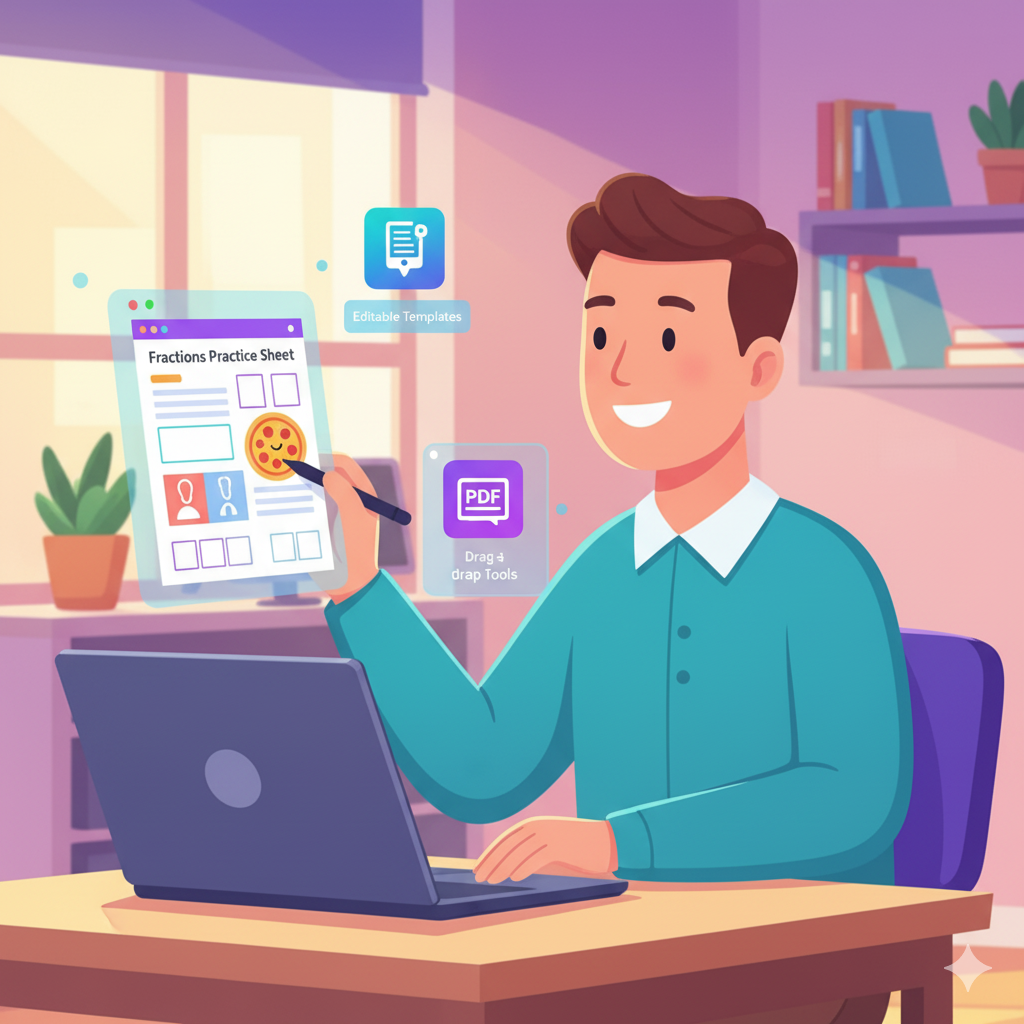 Maths teacher Canva par โFractions Practice Sheetโ bana kar students ke liye learning ko fun bana sakta hai.