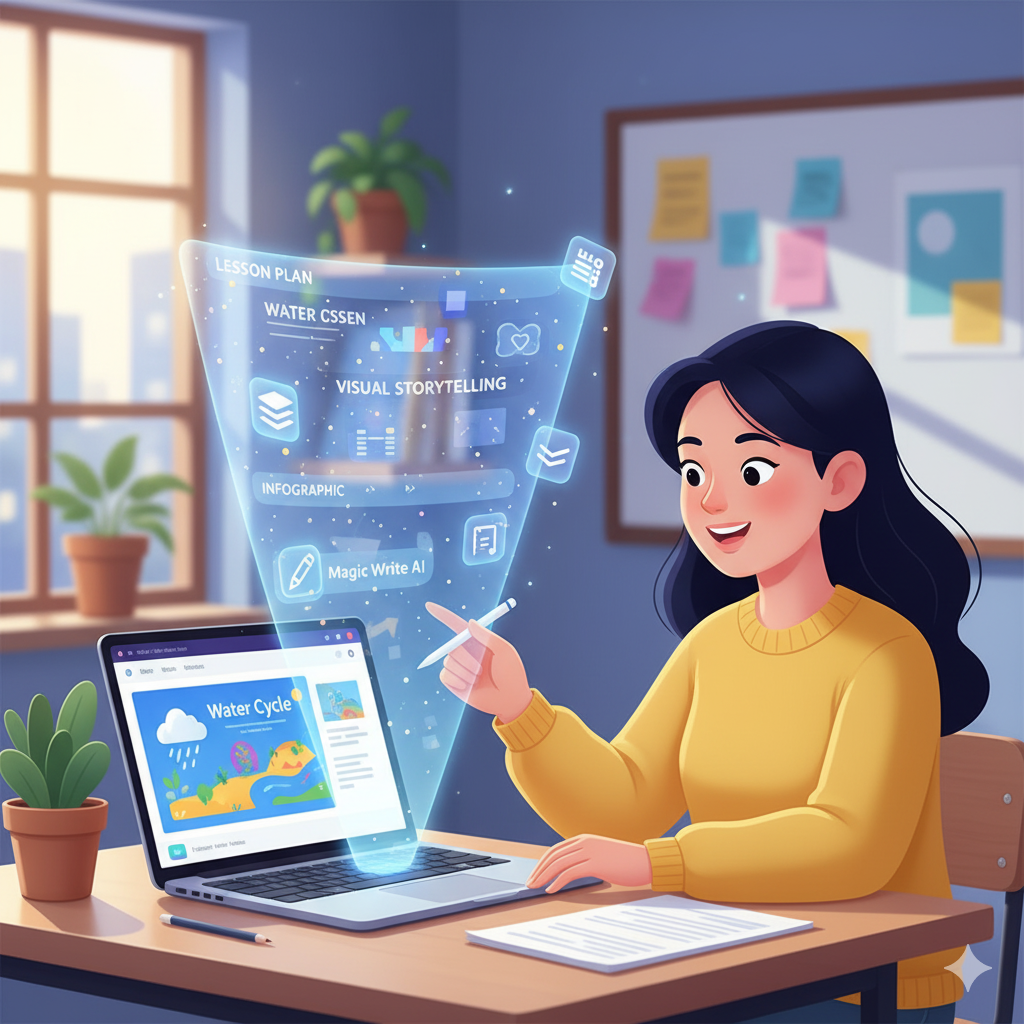 2025 mein Canva ne apne AI tools ke zariye teachers ke liye aur bhi advanced features introduce kiye hain.